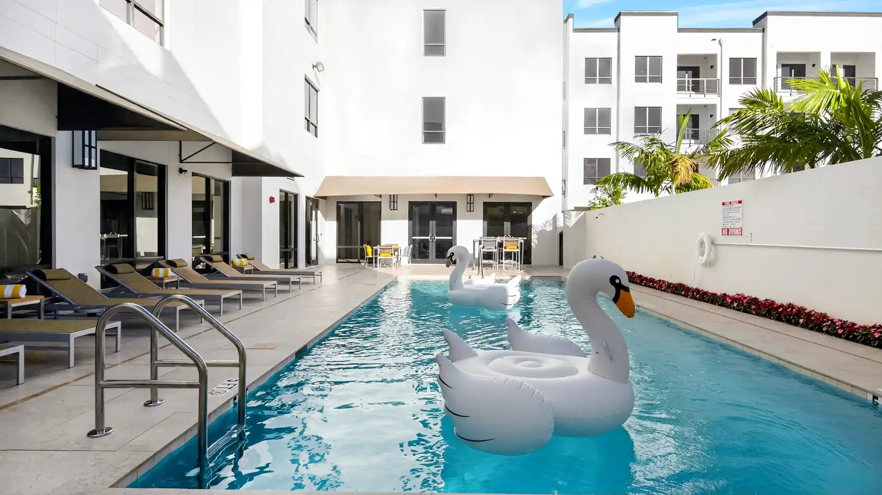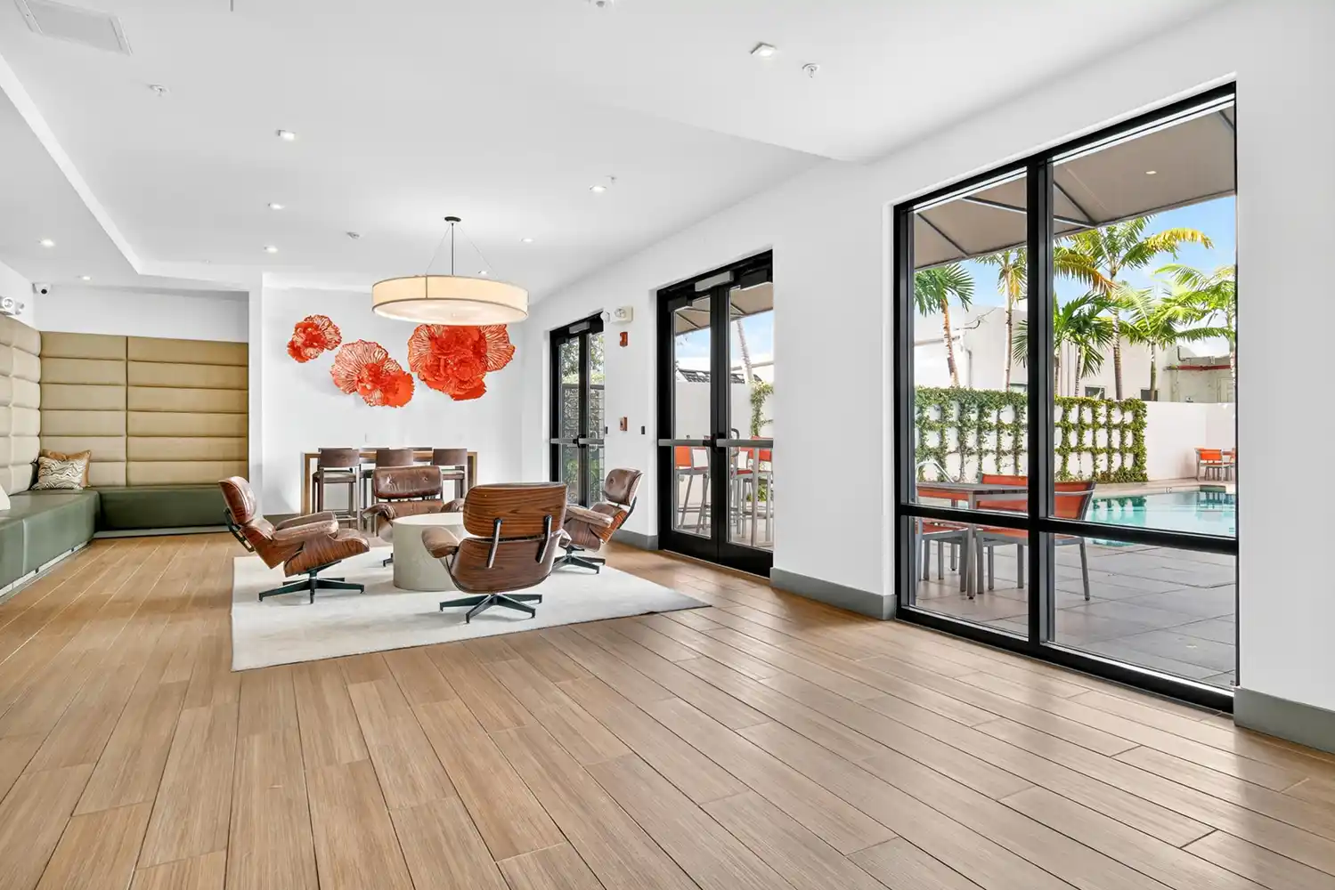 A modern, artsy lobby with warm brick accents makes a stunning first impression. Elevate your lifestyle with our state-of-the-art fitness center, yoga spaces, and a South Beach-style pool. Enjoy quiet productivity or relaxation in our resident lounge and conference room. Our on-site coffee bar keeps you energized throughout the day.